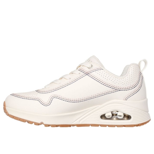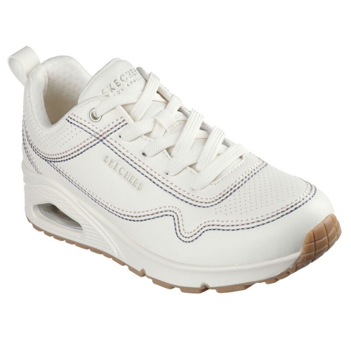 Esta temporada, luce un estilo clásico con un toque moderno con Skechers Street™ Uno - Luxurious Stitches. Esta moderna zapatilla con cordones cuenta con una parte superior de duraleather sintético con costuras en contraste, una plantilla Skechers Air-Cooled Memory Foam® y media suela Skech-Air® con cámara de aire visible.
