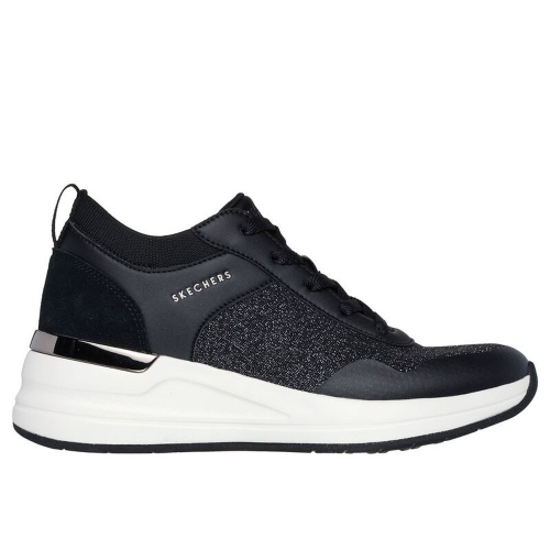 Brilla con tu estilo deportivo con Skechers Street™ Billion 2 - Winning Streak. Esta moderna zapatilla con cordones cuenta con una parte superior de tejido knit brillante, duraleather y ante, cuello acanalado, media suela con cuña y una plantilla Skechers Air-Cooled Memory Foam®.
