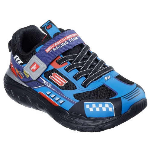 Consigue un estilo y una comodidad propios de una máquina con las Skechers Skech Tracks. Este divertido diseño con temática automovilística cuenta con una parte superior de material sintético y de malla con cordones elásticos, cierre ajustable en el empeine, accesorio para llavero y una cómoda plantilla con amortiguación.