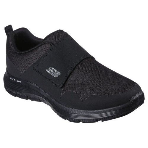 Mantente activo con la comodidad ligera y flexible de la Skechers Flex Advantage 4.0 - Upshift. Calzado deportivo sin cordones y con parte superior de malla, piel y tejido sintético con tira cruzada en la zona del metatarso y plantilla Skechers Air-Cooled Memory Foam® con amortiguación.