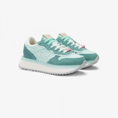 La versión de Big Stargirl que interpreta las atmósferas ligeras de la temporada. La icónica zapatilla SUN68 se ofrece en gamuza y lona con bordes deshilachados. Las cuentas de colores que decoran el cordón enfatizan la actitud irónica del modelo.