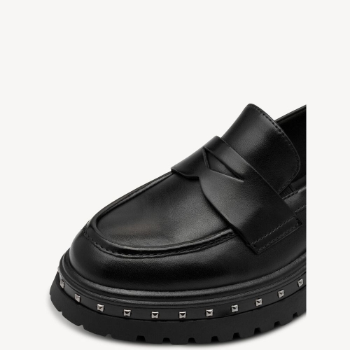 Disfruta de cada momento con confianza e inspiración: estas pantuflas Tamaris combinan un estilo urbano y chic con una suave plantilla de espuma viscoelástica Touchit que se adapta delicadamente a tu pie. Los llamativos tachuelas y la suela gruesa y texturizada aportan un toque moderno que se adapta perfectamente a tu personalidad. Ya sea para ir al trabajo o a un evento, la punta redondeada y el tacón de 50 mm prometen una elegancia natural para cualquier ocasión.