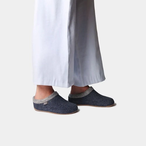 El diseño está confeccionado en fieltro y cuenta con una plantilla extraíble con una cuña de 4 cm en la parte del talón. La suela, de goma antideslizante, garantiza una pisada segura.