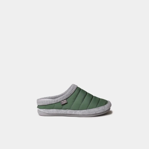 Este diseño combina tejido acolchado y fieltro para ofrecer calidez y confort. La base de la suela es de goma antideslizante, ideal para una pisada firme y segura.