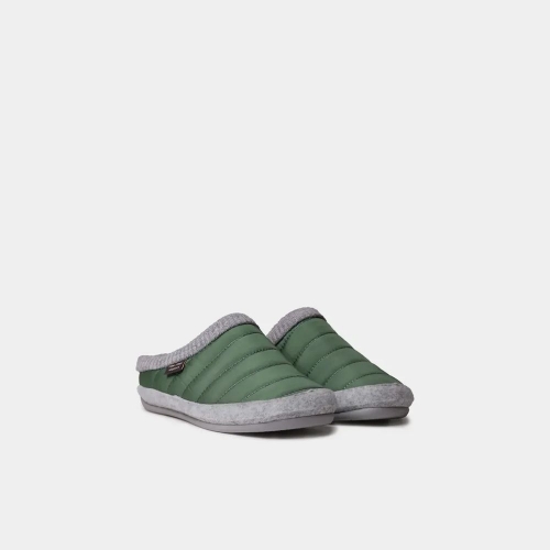 Este diseño combina tejido acolchado y fieltro para ofrecer calidez y confort. La base de la suela es de goma antideslizante, ideal para una pisada firme y segura.