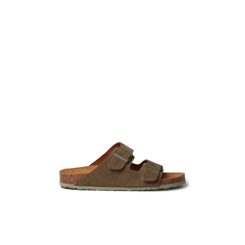 Esta sandalia de hombre con hebillas tipo BIO está elaborada en serraje. La suela de corcho y goma EVA tiene una altura total de 2,5 cm. La planta está forrada en serraje para mayor confort. Cuenta con dos tiras superiores con hebillas ajustables para aportar la mayor sujeción.