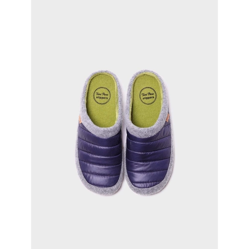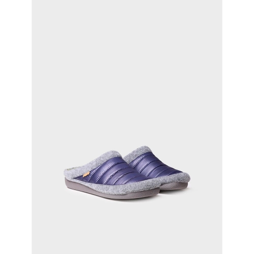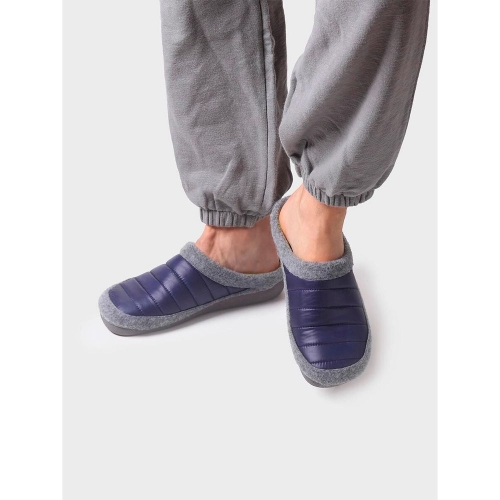 Esta zapatilla de casa tipo zueco para hombre combina tejido acolchado y fieltro. La suela es plana y tiene 3 cm de grosor. La suela es de goma antideslizante. Cuenta con una plantilla extraíble con una cuña de 2 cm de grosor en la parte del talón. Lleva un forro interior de suave pelo sintético.