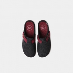 Esta zapatilla de casa tipo zueco para hombre está confeccionada en fieltro reciclado. Cuanta con una hebilla regulable para poder ajustar esta slipper. Un modelo muy cómodo que te acompañará todo el invierno. La suela, la plantilla y la tira ajustable están hechas en un color contrastado. La suela es de goma antideslizante y tiene 3 cm de grosor.