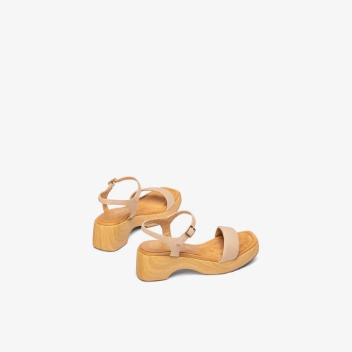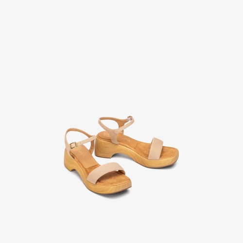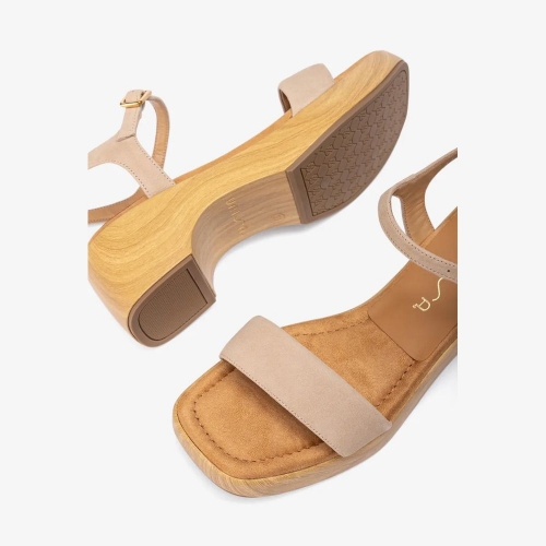 Sandalia de punta cuadrada fabricada en ante. Pulsera en el tobillo ajustable con hebilla metálica. Bloque ligero con tacón de 5.5cm de altura y plataforma de 2,5cm efecto madera. Suela de goma ligera y antideslizante. Nuestro modelo IRITA forma parte de la familia Unisa.