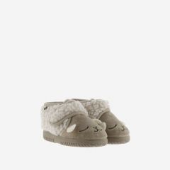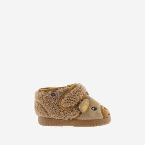 Zapatillas de estar en casa infantiles con motivos de animales. Fabricadas en España en pelito corto muy suave y agradable. Con cierre de tira adherente por lo que son muy fáciles de poner y quitar.