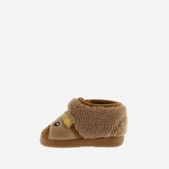 Zapatillas de estar en casa infantiles con motivos de animales. Fabricadas en España en pelito corto muy suave y agradable. Con cierre de tira adherente por lo que son muy fáciles de poner y quitar.