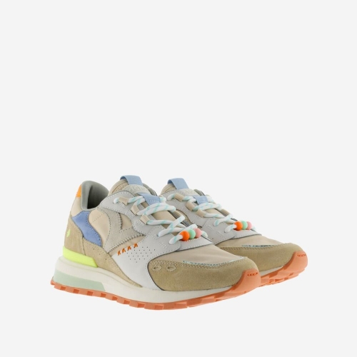 Sneakers multicolor para mujer, en tonos pastel, diseñadas para aportar suavidad y estilo a cualquier look. Incorporan detalles únicos en pespuntes, abalorios decorativos y cordones redondeados que le añaden un toque distintivo. Su mezcla de colores y texturas hace de estas sneakers una opción versátil y moderna para el día a día.