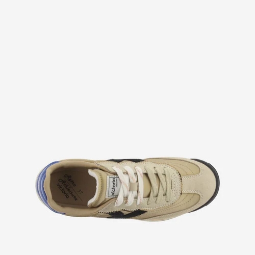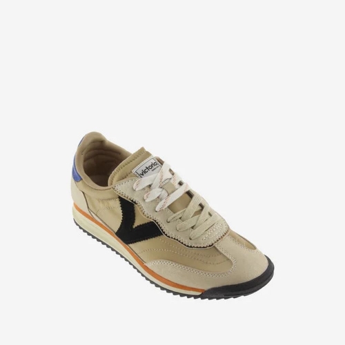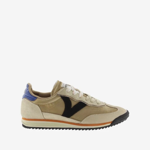 Sneakers para mujer confeccionadas en nylon con un acabado metalizado en combinación con piezas superpuestas también metalizadas y sintéticas. V del lateral en color negro en serraje y pieza trasera con el logotipo de la marca en colores efecto piel en contraste. Cierre mediante cordones bicolor. Suela bicolor y patín dentado en negro que favorece un mejor agarre.