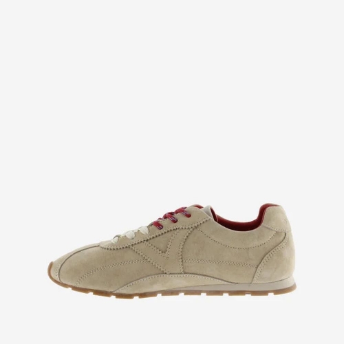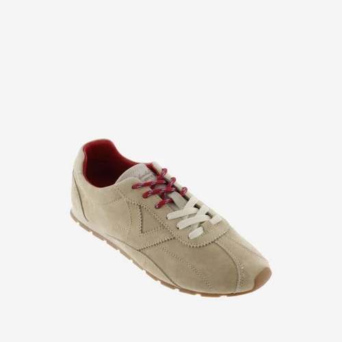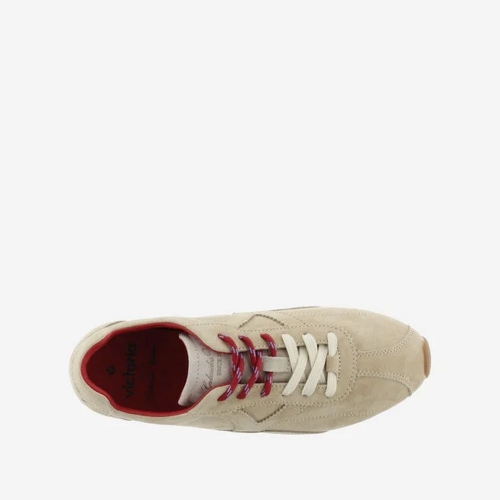 Sneakers para mujer fabricadas en serraje. Grabado de victoria en pieza trasera y pespuntes visibles. Cierre mediante doble cordón: unos blancos y otros de tipo redondo coloridos con estampado y a juego con el forro interior. Suela de goma con patín dentado de EVA en color caramelo.