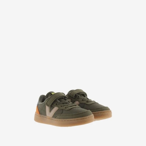Zapatillas deportivas para niños fabricadas en material efecto piel y piezas de efecto serraje al tono, para un estilo duradero y moderno. Detalle de color en la V del lateral y en la pieza trasera. Cierre mediante cordones elásticos al tono y una tira adhesiva para un ajuste cómodo y fácil de poner. La suela en color caramelo añade un toque único completando el diseño juvenil y versátil de estas zapatillas.