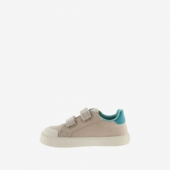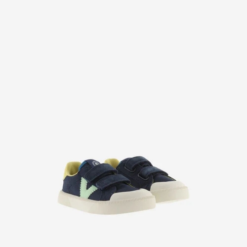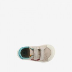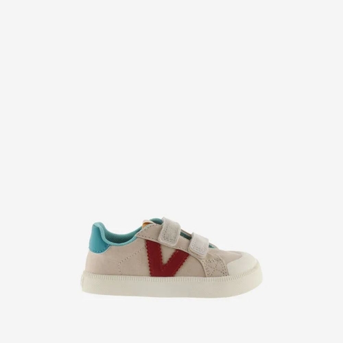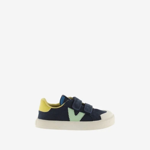 Zapatillas deportivas multicolor barefoot para niños fabricadas en lona. V de victoria lateral y pieza trasera en colores efecto piel. Forro interior a juego con la talonera. Cierre de tiras adherentes (dos hasta la talla 35 y tres a partir de la 36) que aportan mayor sujección y facilitan el calce, fomentando su autonomía. Suela blanca de TPR con refuerzo en la puntera para una mayor resistencia y durabilidad.