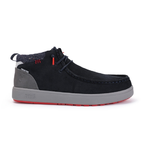 -Corte en serraje hidrofugado repelente al agua con talonera de piel nobuck